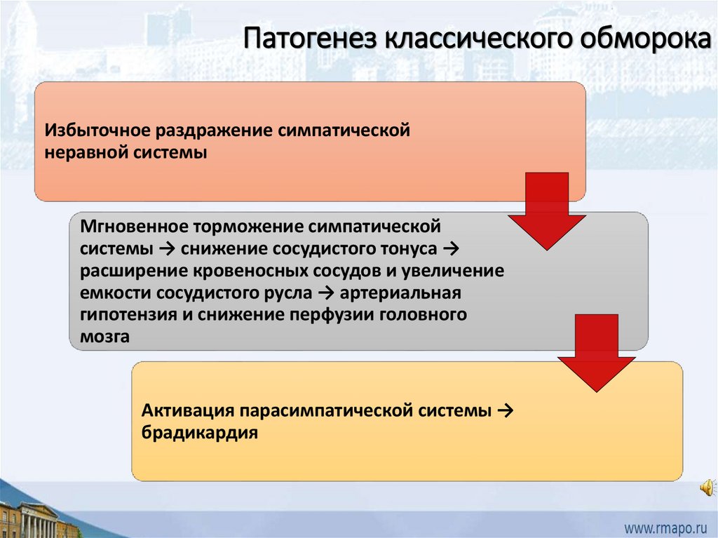 Патогенез классического обморокаИзбыточное раздражение симпатической