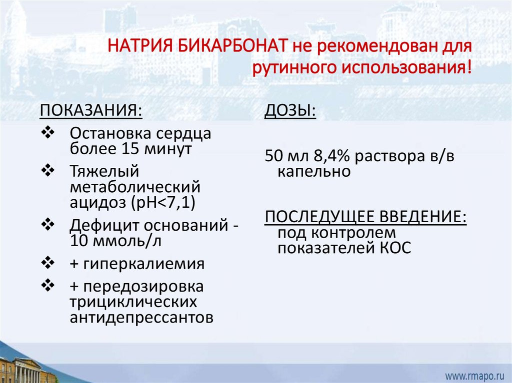 НАТРИЯ БИКАРБОНАТ не рекомендован длярутинного использования!