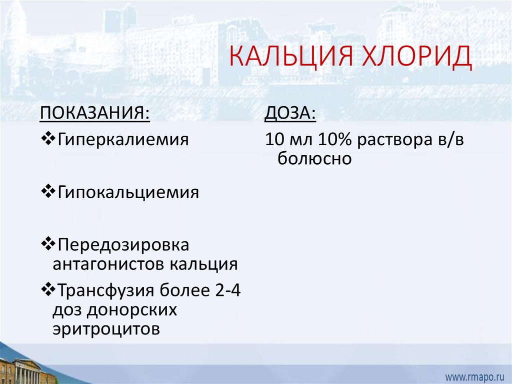 КАЛЬЦИЯ ХЛОРИДПОКАЗАНИЯ: