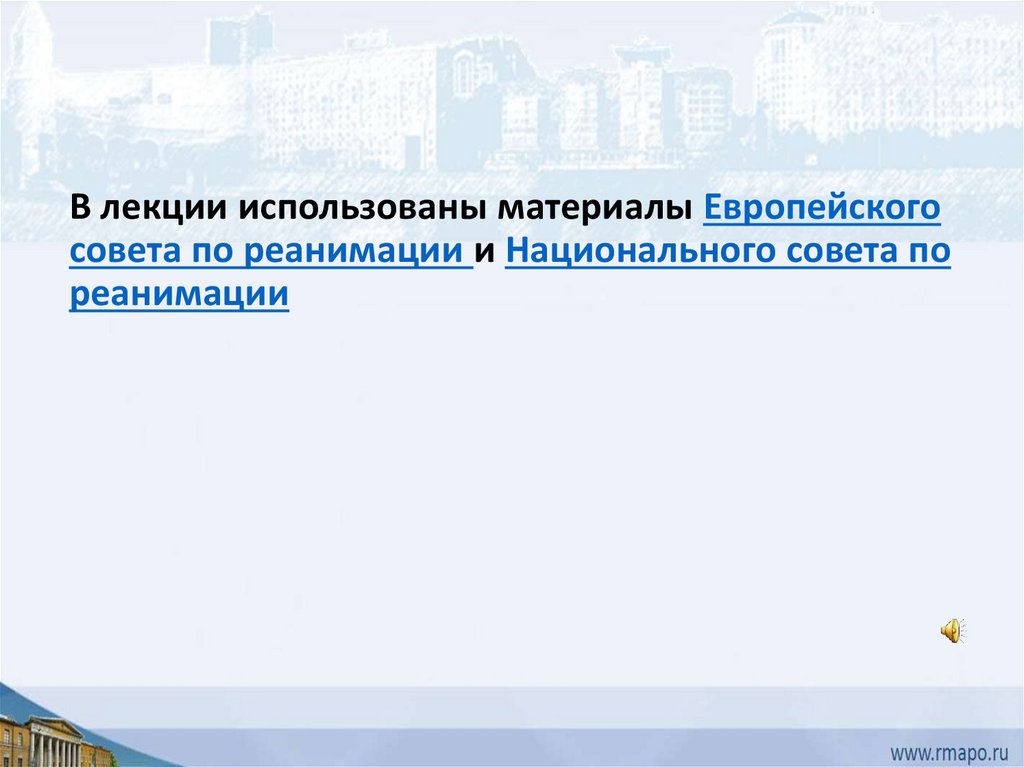 В лекции использованы материалы Европейскогосовета по реанимации и Национального совета по