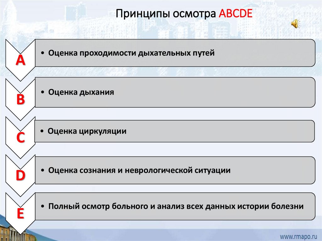 Принципы осмотра ABCDE1. Окликнуть и потрясти за плечи