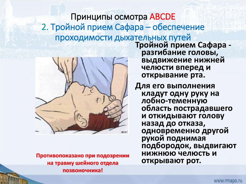 Принципы осмотра ABCDE2. Тройной прием Сафара – обеспечение