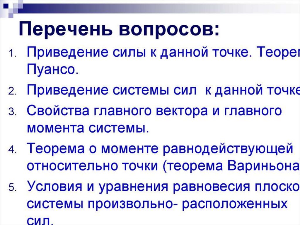 Плоская система произвольно расположенных сил. (Тема 1.4)