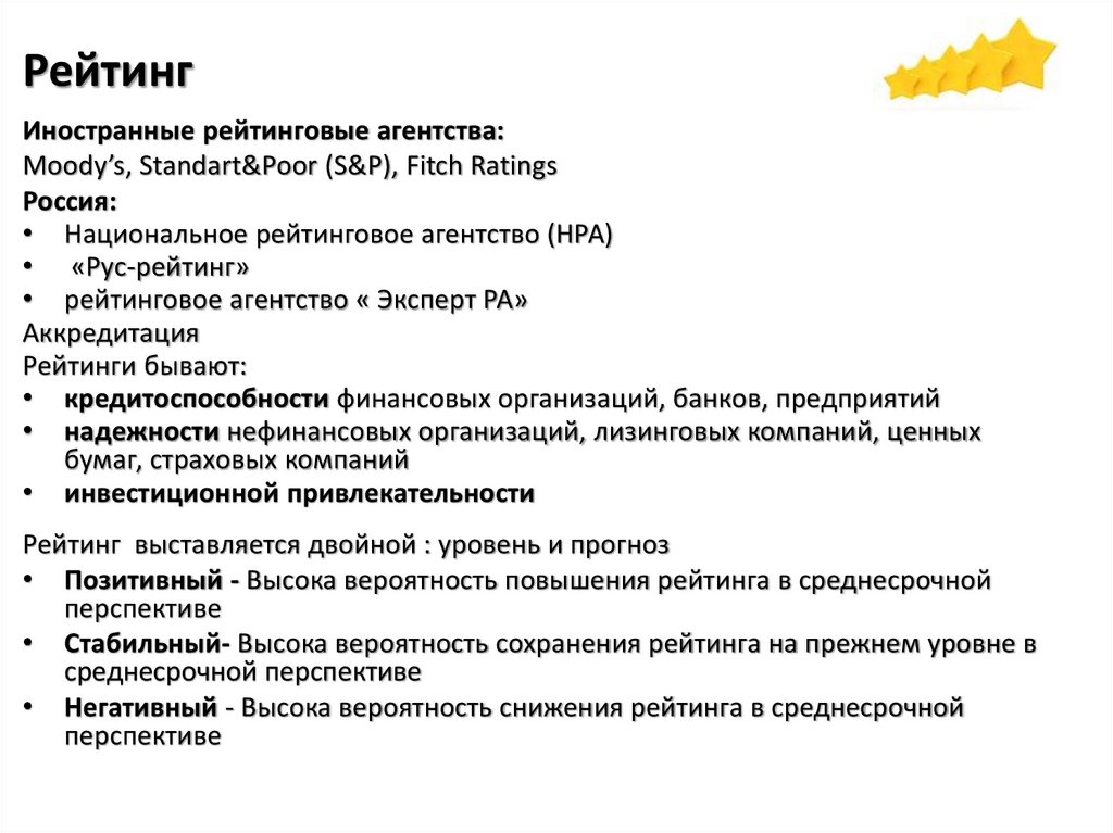 Рейтинг выставляется двойной : уровень и прогноз