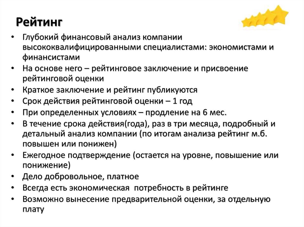 • На основе него – рейтинговое заключение и присвоение