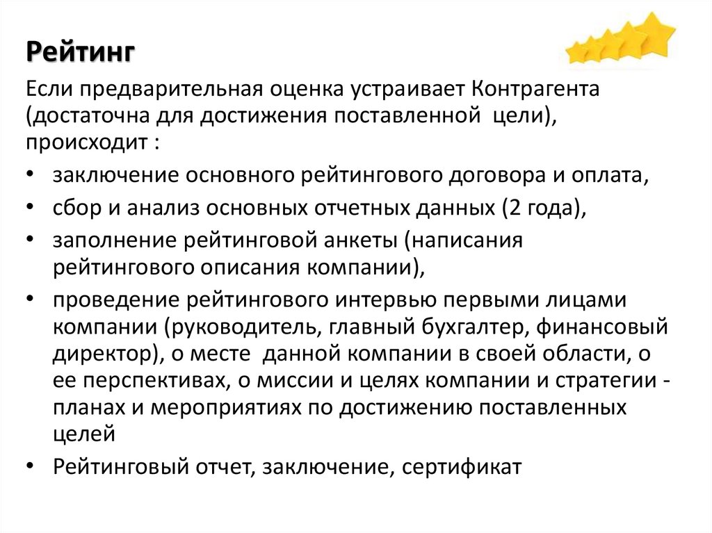 РейтингЕсли предварительная оценка устраивает Контрагента