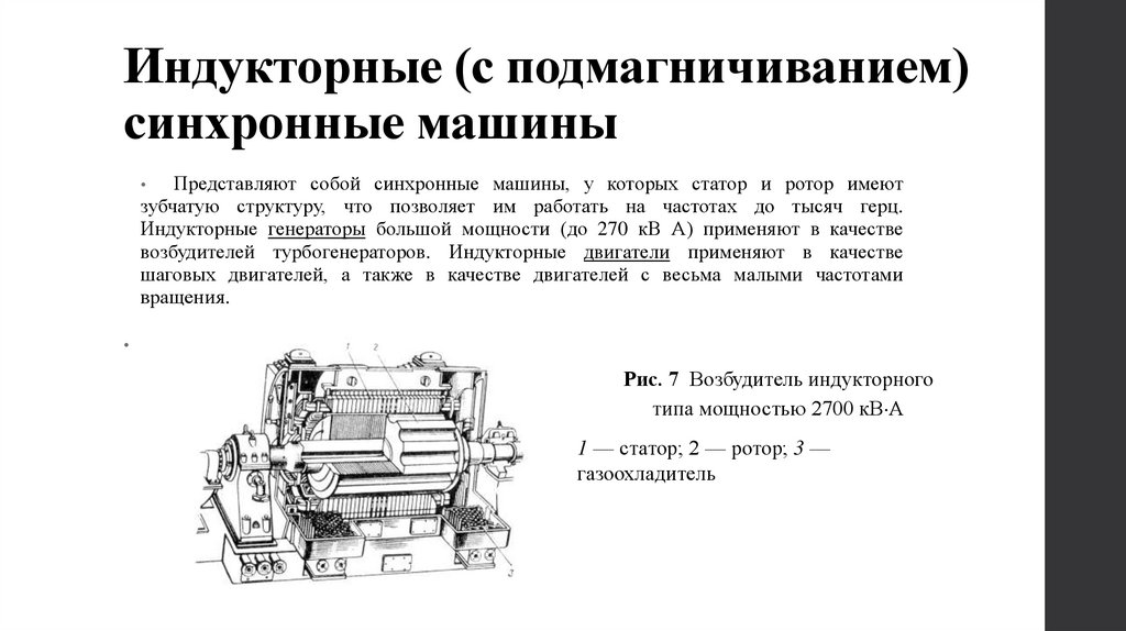 возбудителей турбогенераторов. Индукторные двигатели применяют в качестве