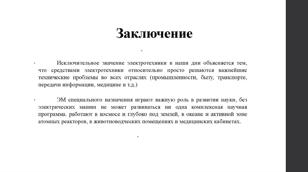 ЗаключениеИсключительное значение электротехники в наши дни объясняется тем,