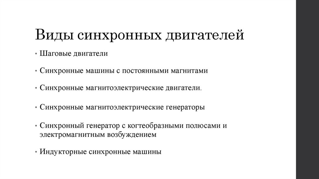 шаговых двигателей, а также в качестве двигателей с весьма малыми частотами