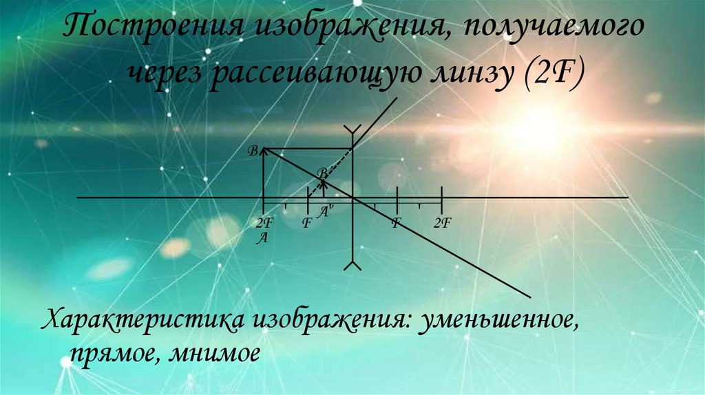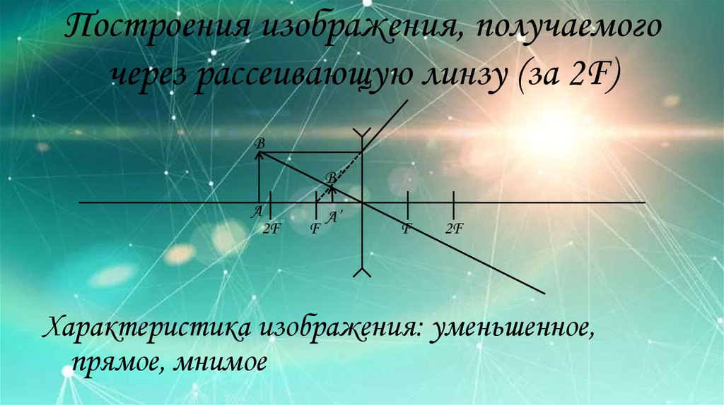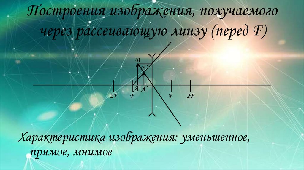 Построения изображения, получаемогочерез рассеивающую линзу (между F и2F)