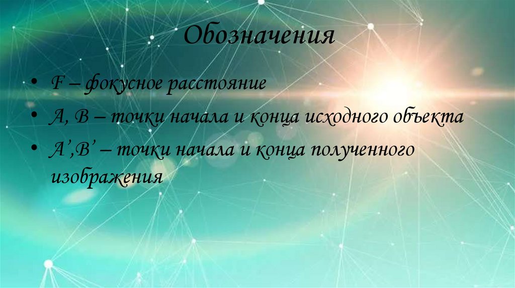 Построения изображения, получаемогочерез собирающую линзу (F)