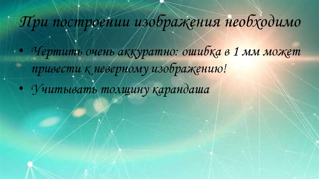 При построении изображения необходимо• Чертить очень аккуратно: ошибка в 1 мм может