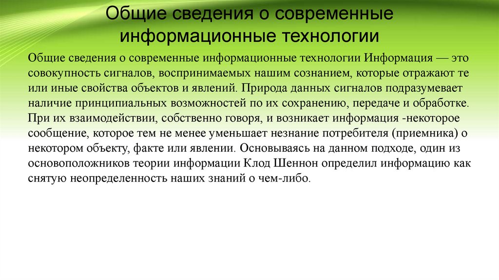 Общие сведения о современные информационные технологии Информация — это