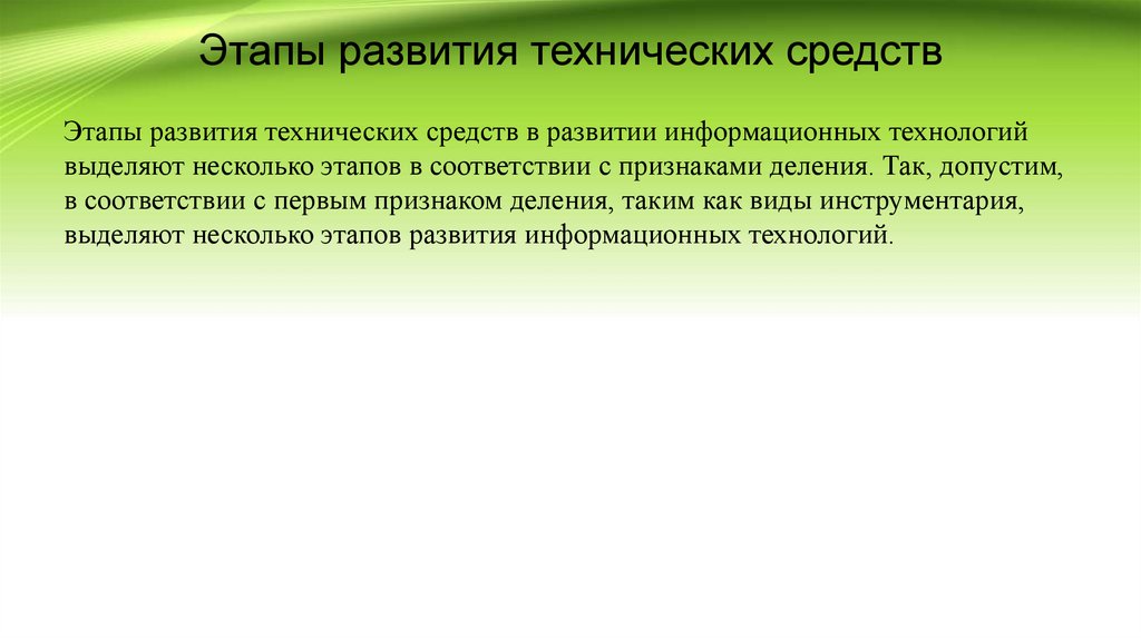 Этапы развития технических средствЭтапы развития технических средств в развитии информационных технологий