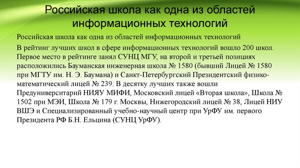 Российская школа как одна из областейинформационных технологий