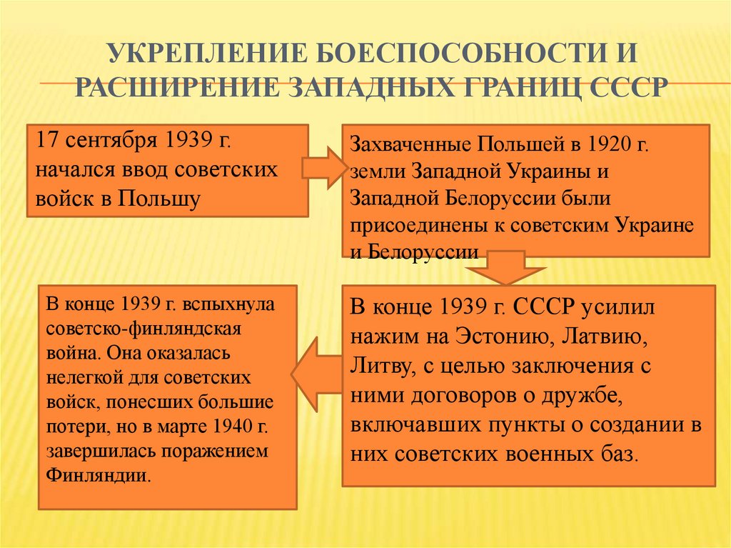 УКРЕПЛЕНИЕ БОЕСПОСОБНОСТИ ИРАСШИРЕНИЕ ЗАПАДНЫХ ГРАНИЦ СССР