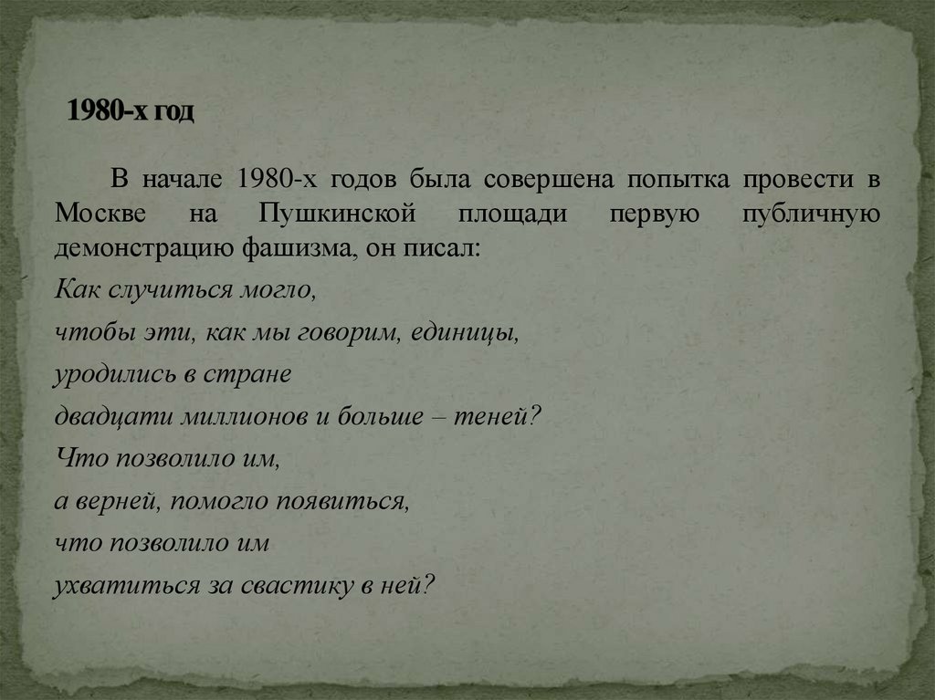 В начале 1980-х годов была совершена попытка провести вМоскве на Пушкинской площади первую публичную