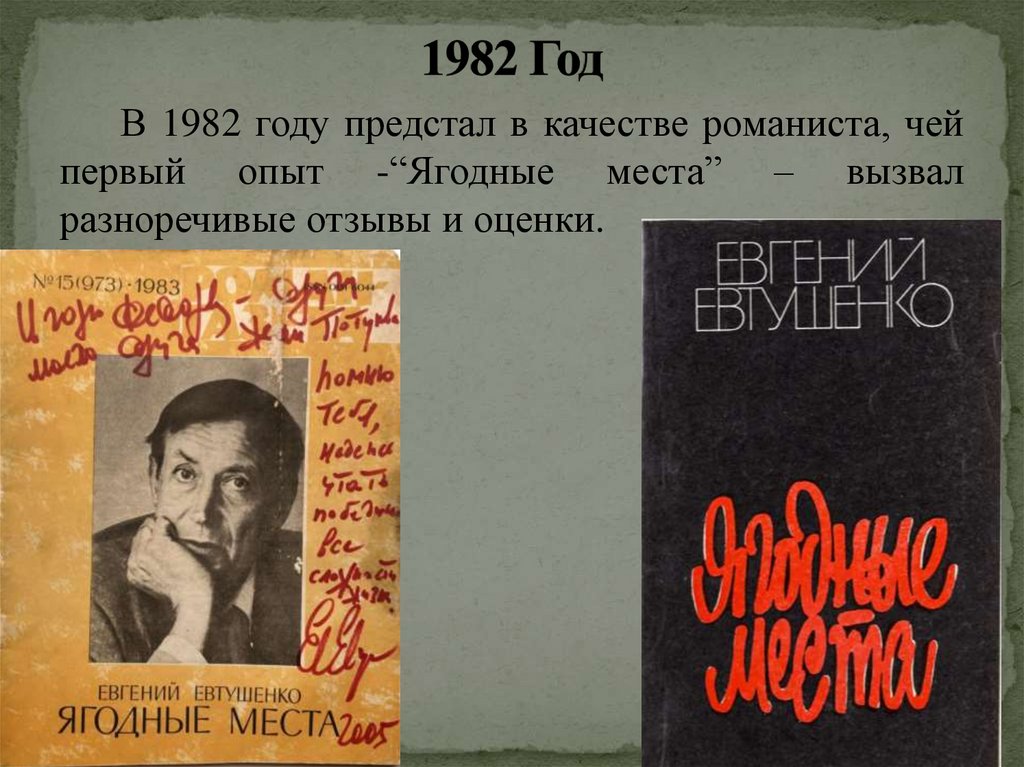 В 1982 году предстал в качестве романиста, чейпервый опыт -“Ягодные места” – вызвал