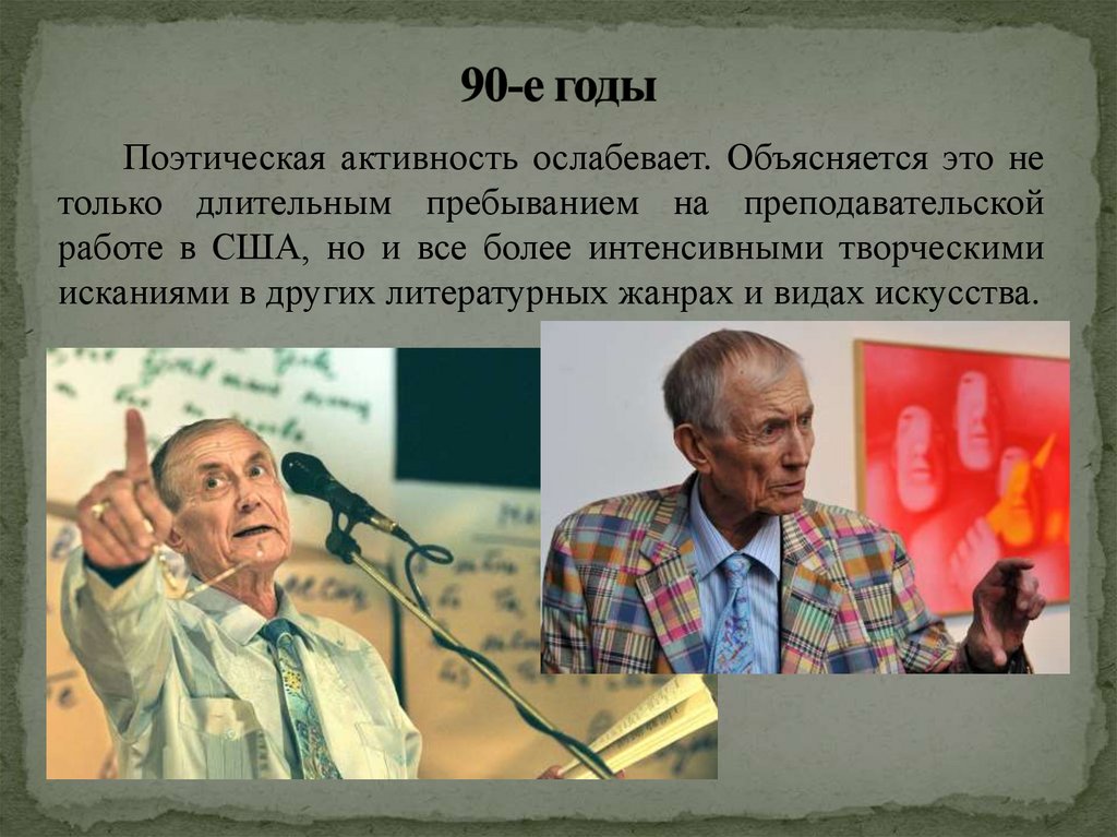 Поэтическая активность ослабевает. Объясняется это нетолько длительным пребыванием на преподавательской