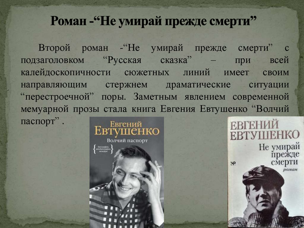 мемуарной прозы стала книга Евгения Евтушенко “Волчий