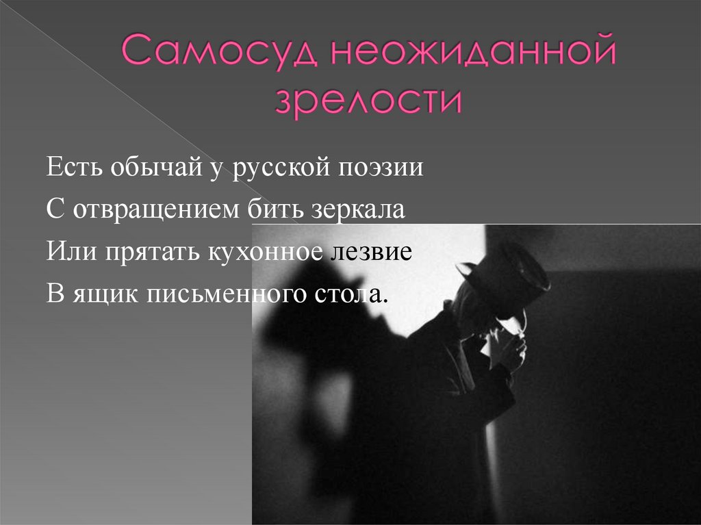 Есть обычай у русской поэзииС отвращением бить зеркала