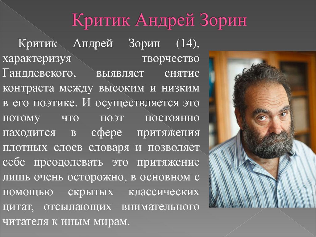 Критик Андрей Зорин (14),характеризуя