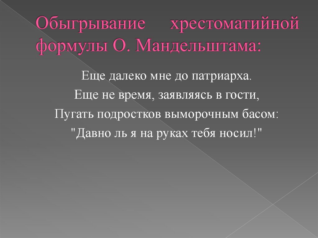 Еще далеко мне до патриарха.Еще не время, заявляясь в гости,