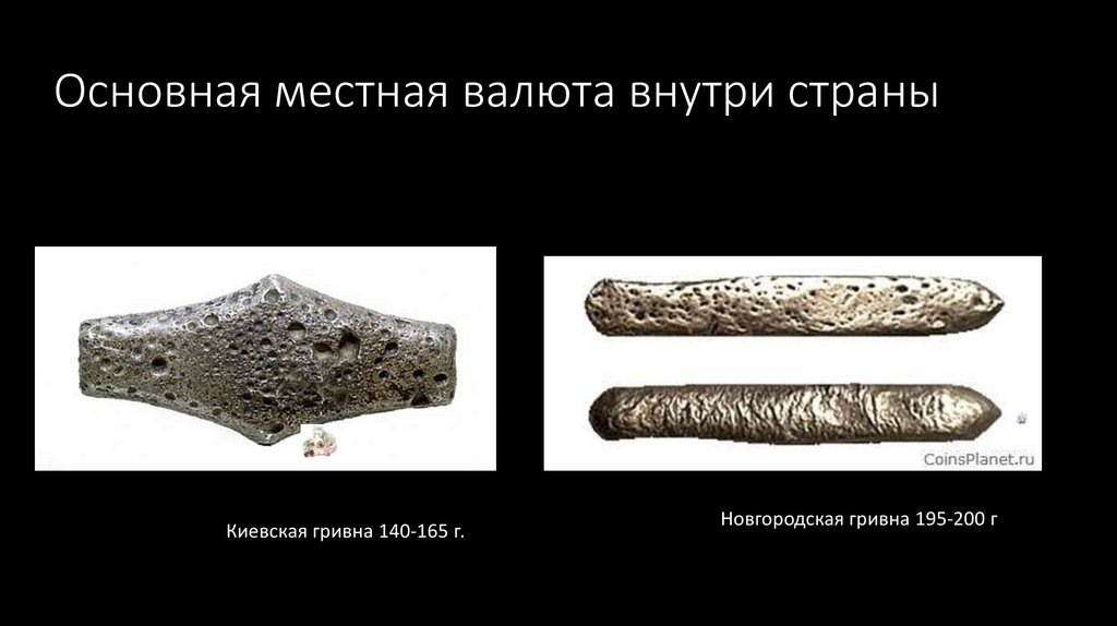 Основная местная валюта внутри страныКиевская гривна 140-165 г.