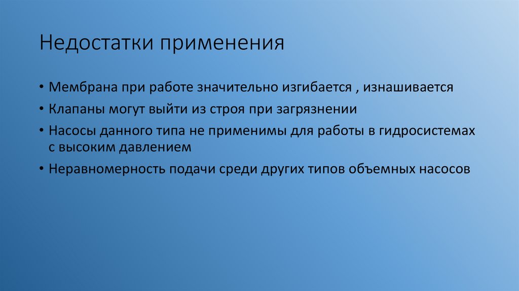 Недостатки применения• Мембрана при работе значительно изгибается , изнашивается