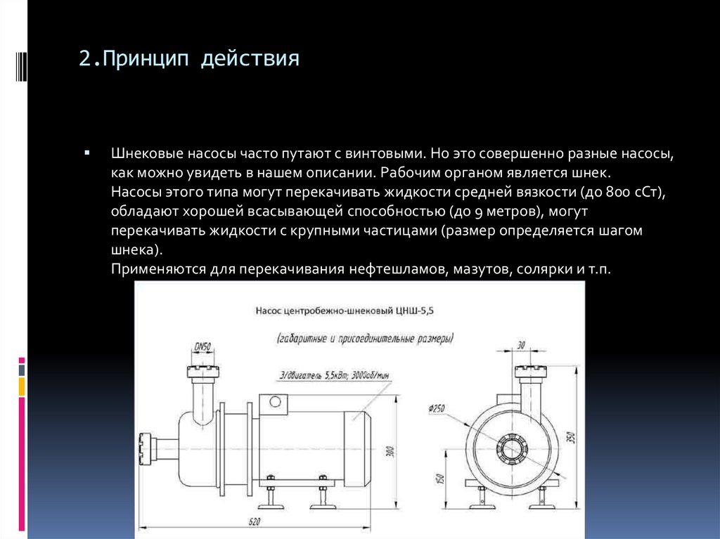 2.Принцип действияШнековые насосы часто путают с винтовыми. Но это совершенно разные насосы,