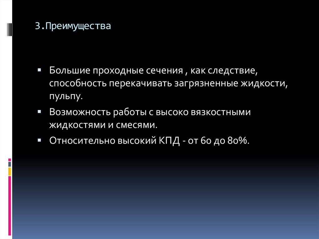 3.ПреимуществаБольшие проходные сечения , как следствие,