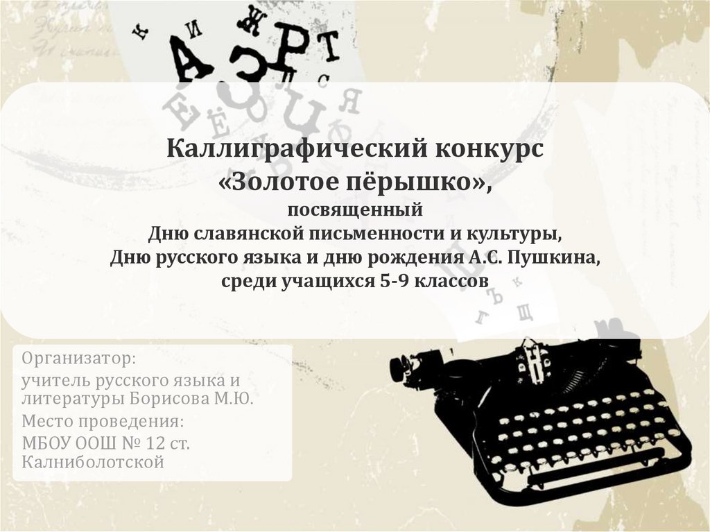 Каллиграфический конкурс «Золотое пёрышко». 5-9 класс