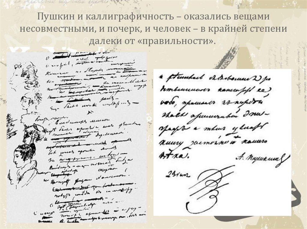 Пушкин и каллиграфичность – оказались вещаминесовместными, и почерк, и человек – в крайней степени