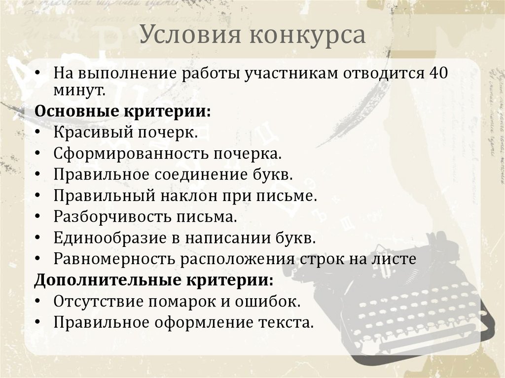 • Красивый почерк.