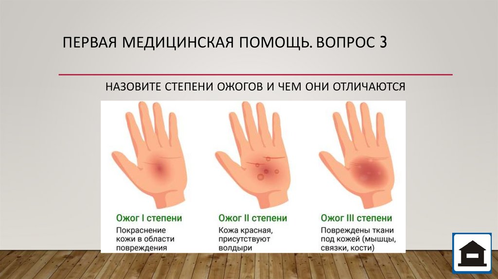 ПЕРВАЯ МЕДИЦИНСКАЯ ПОМОЩЬ. ВОПРОС 3НАЗОВИТЕ СТЕПЕНИ ОЖОГОВ И ЧЕМ ОНИ ОТЛИЧАЮТСЯ