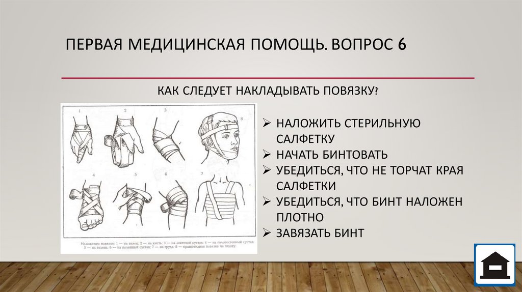 ПЕРВАЯ МЕДИЦИНСКАЯ ПОМОЩЬ. ВОПРОС 6КАК СЛЕДУЕТ НАКЛАДЫВАТЬ ПОВЯЗКУ?