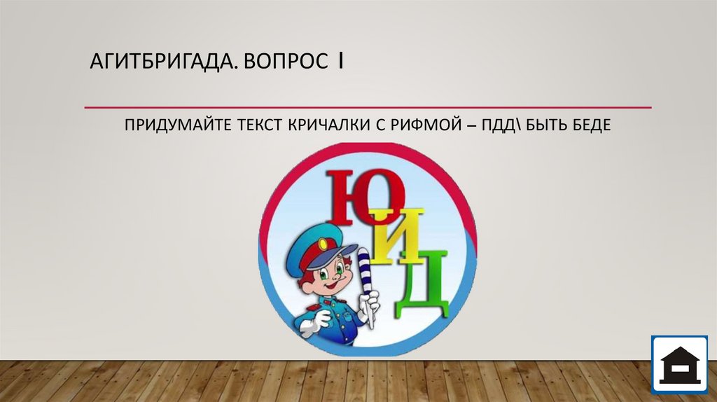 АГИТБРИГАДА. ВОПРОС 1ПРИДУМАЙТЕ ТЕКСТ КРИЧАЛКИ С РИФМОЙ – ПДД\ БЫТЬ БЕДЕ