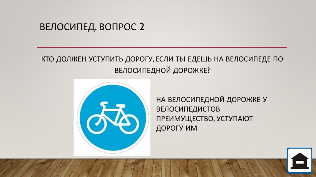 ВЕЛОСИПЕД. ВОПРОС 2КТО ДОЛЖЕН УСТУПИТЬ ДОРОГУ, ЕСЛИ ТЫ ЕДЕШЬ НА ВЕЛОСИПЕДЕ ПО
