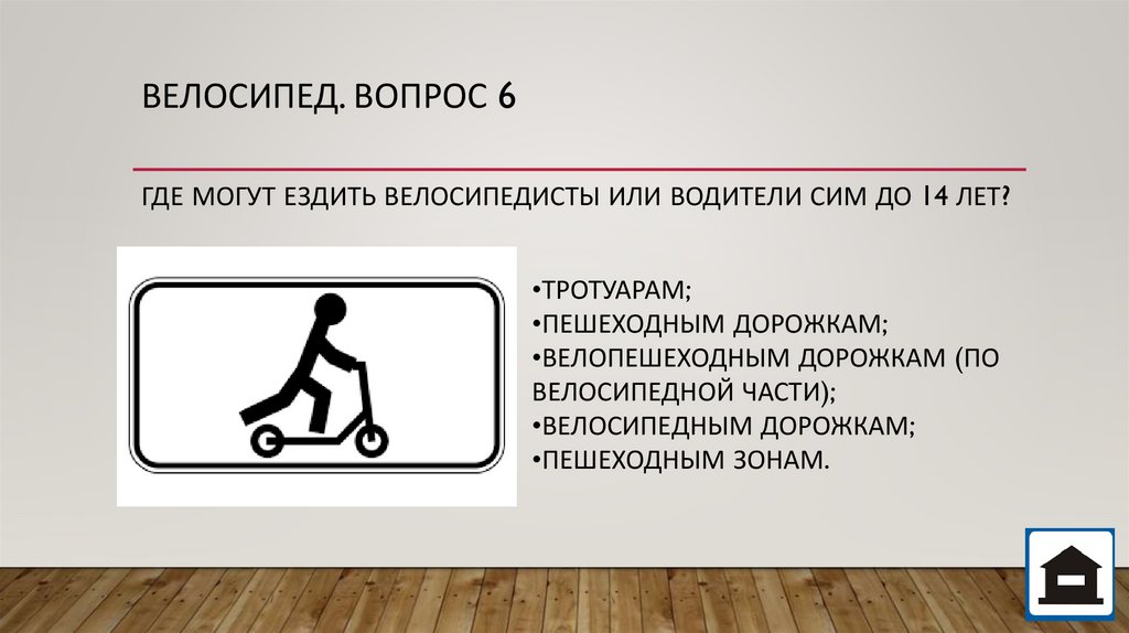 ВЕЛОСИПЕД. ВОПРОС 6ГДЕ МОГУТ ЕЗДИТЬ ВЕЛОСИПЕДИСТЫ ИЛИ ВОДИТЕЛИ СИМ ДО 14 ЛЕТ?