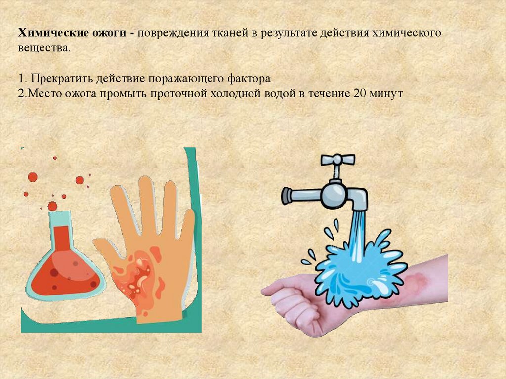 Химические ожоги - повреждения тканей в результате действия химическоговещества.
