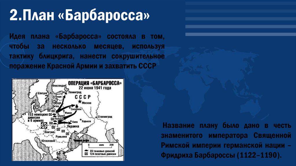 2.План «Барбаросса»Идея плана «Барбаросса» состояла в том,