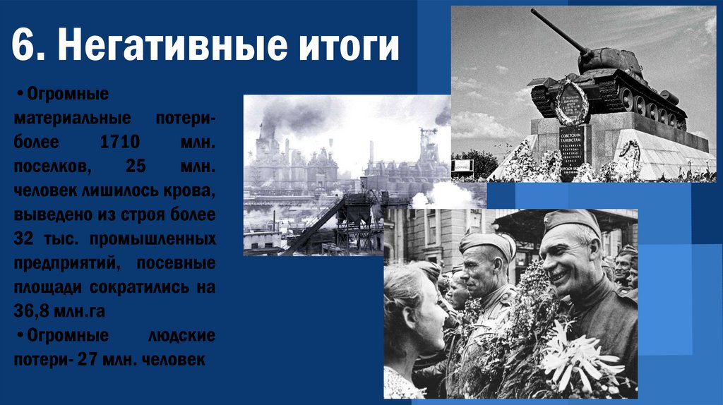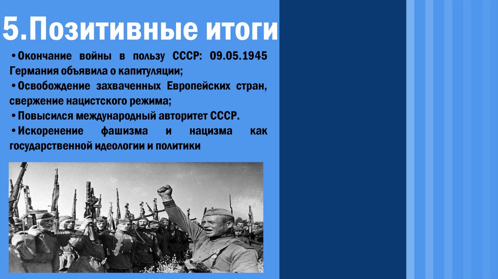 5.Позитивные итоги•Окончание войны в пользу СССР: 09.05.1945
