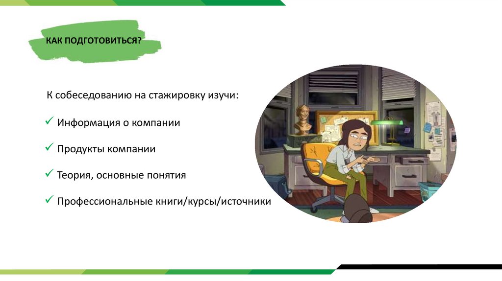 КАК ПОДГОТОВИТЬСЯ?К собеседованию на стажировку изучи: