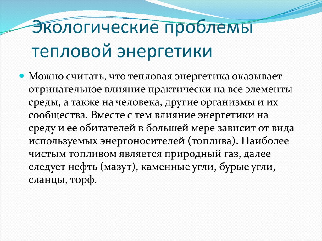 Проблемы энергетикиЭнергетика оказывает наиболее сильное