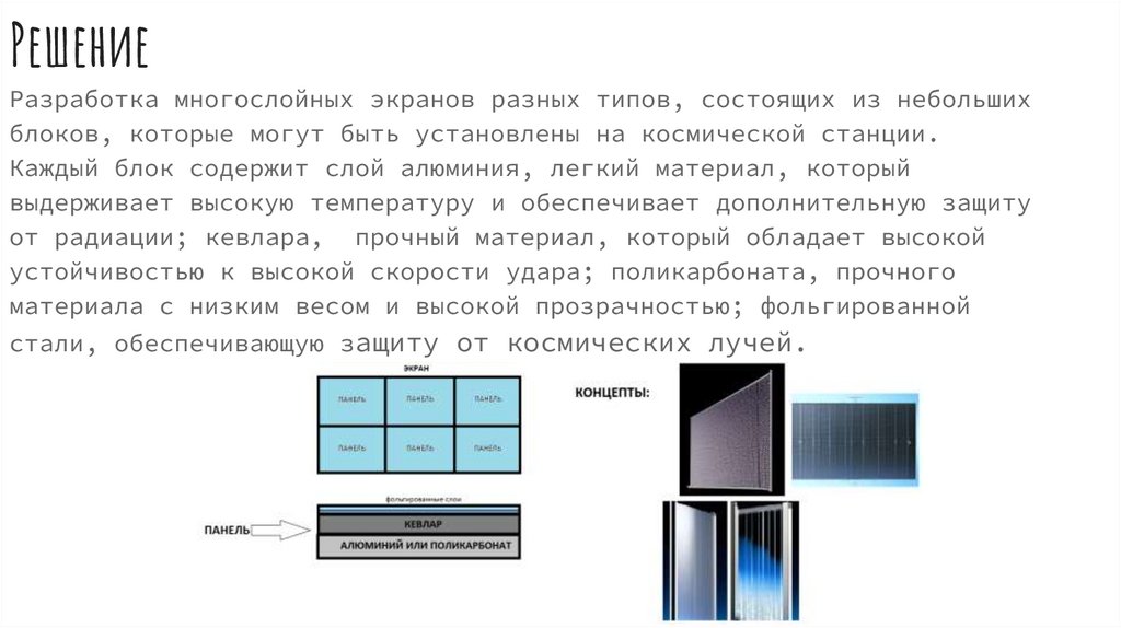 РешениеРазработка многослойных экранов разных типов, состоящих из небольших