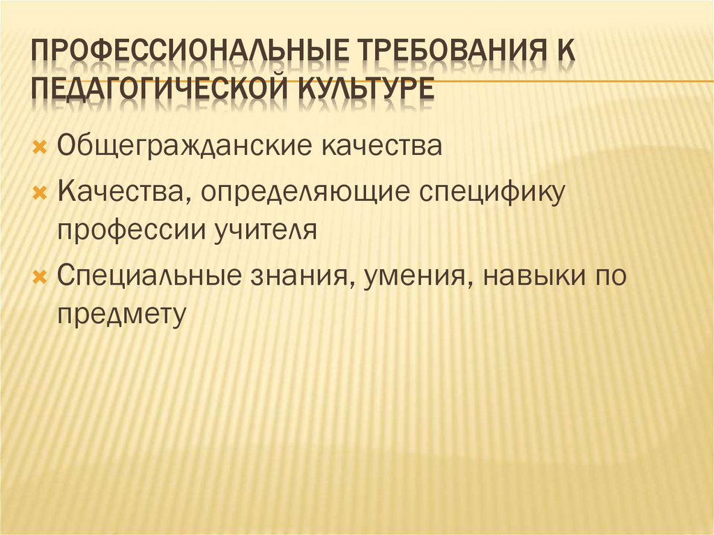 ПРОФЕССИОНАЛЬНЫЕ ТРЕБОВАНИЯ КПЕДАГОГИЧЕСКОЙ КУЛЬТУРЕ