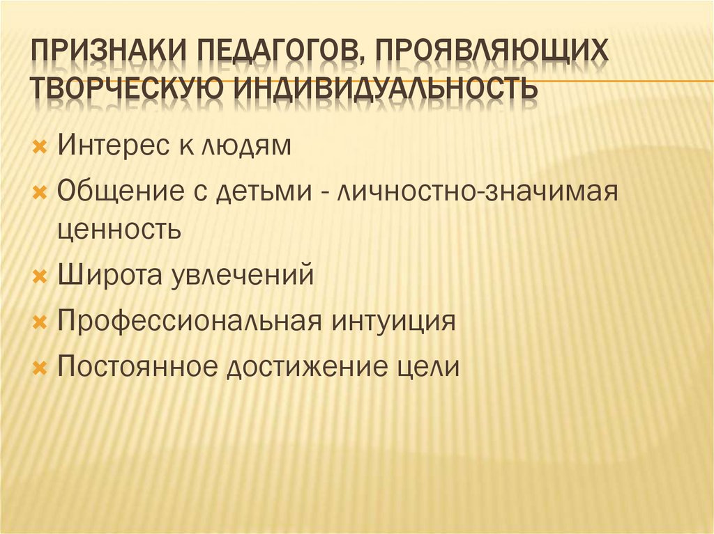 ПРИЗНАКИ ПЕДАГОГОВ, ПРОЯВЛЯЮЩИХТВОРЧЕСКУЮ ИНДИВИДУАЛЬНОСТЬ