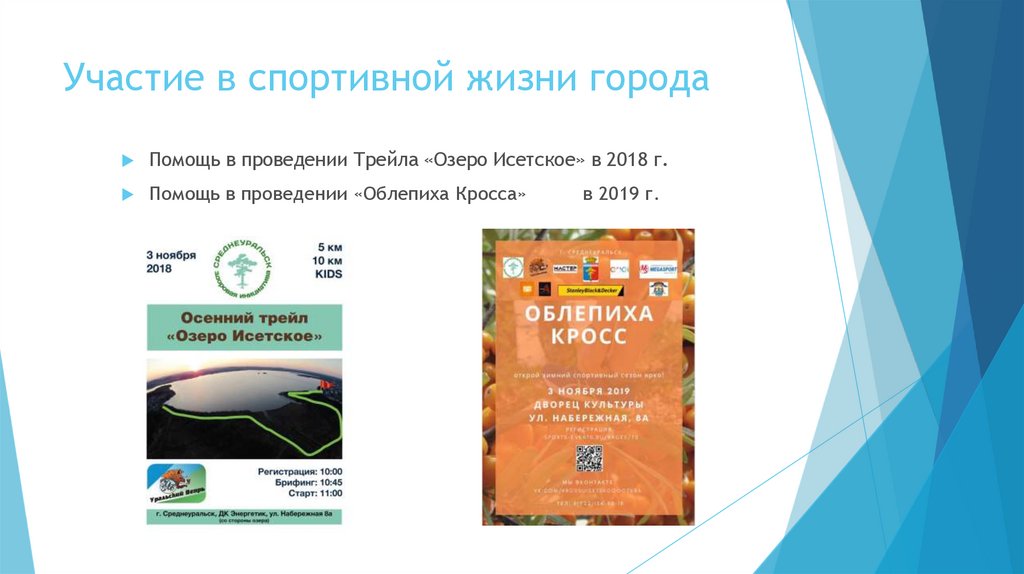 Участие в спортивной жизни городаПомощь в проведении Трейла «Озеро Исетское» в 2018 г.
