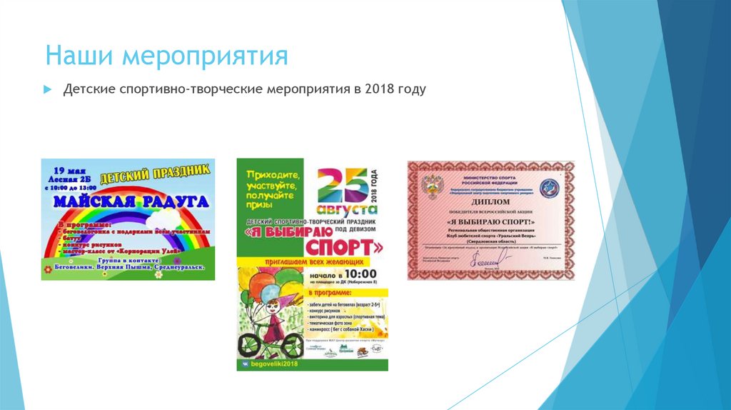 Наши мероприятияДетские спортивно-творческие мероприятия в 2018 году