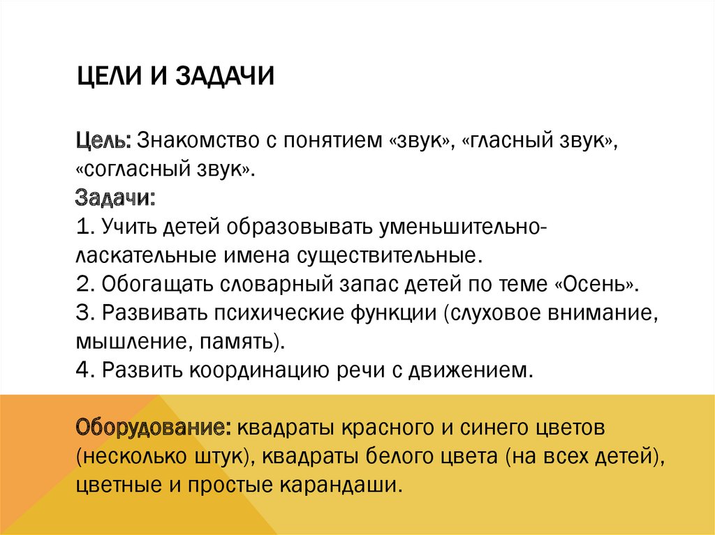 ЦЕЛИ И ЗАДАЧИЦель: Знакомство с понятием «звук», «гласный звук»,